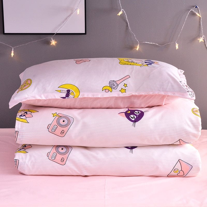 1 x Duvet cover(1pcs) 1 x Flat sheet(1pcs) 1 x Pillowcase(1 or 2pcs) (Doesnt include comforter)