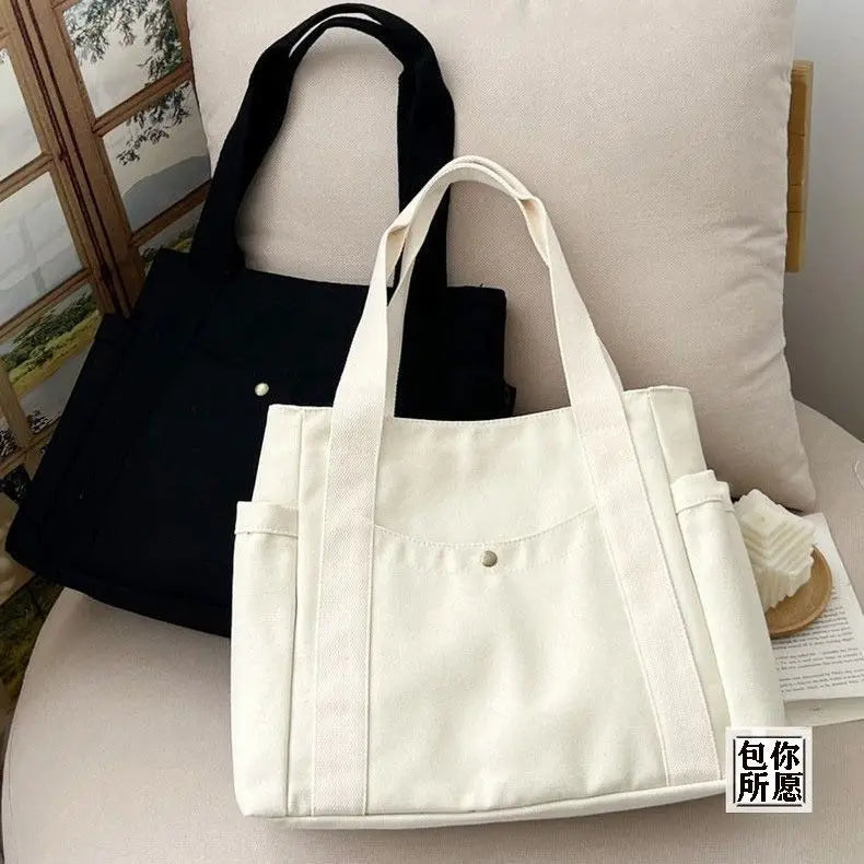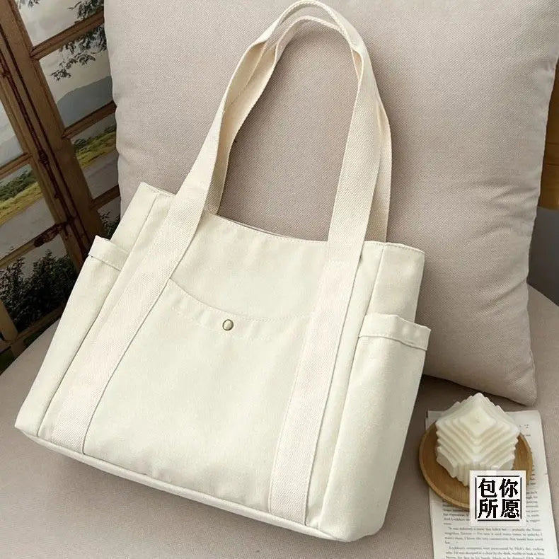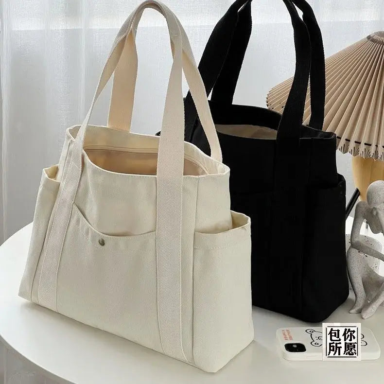 Stay stylish and organised with this Large Capacity Canvas Tote Bag—perfect for commuting, college, or everyday errands. Made from durable canvas with a soft structure and zip closure, it’s spacious enough to carry books, a laptop, or daily essentials. Its minimalist design makes it a versatile piece that goes with any casual or preppy outfit.
