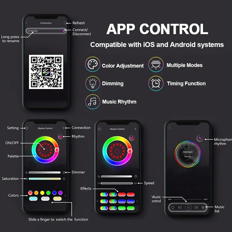 Control: Bluetooth app + remote (battery not included)